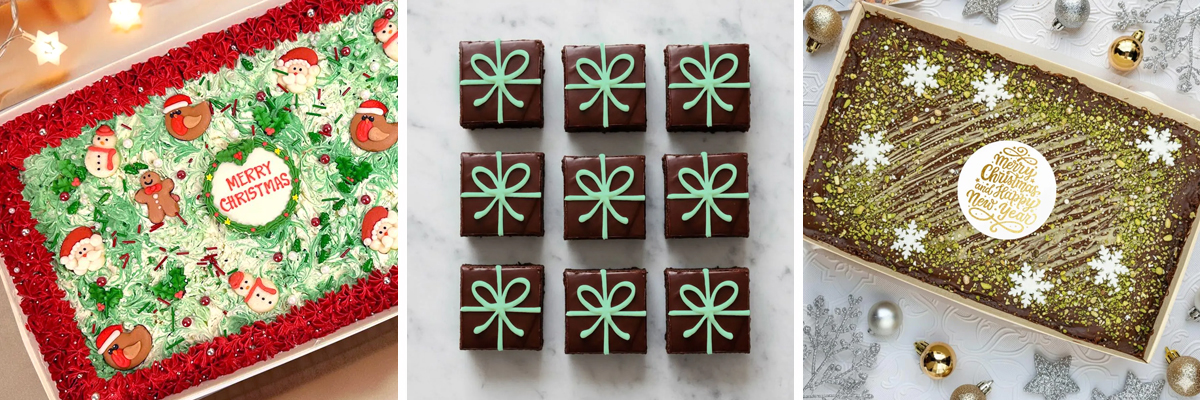 Christmas is a time for magic – from twinkling lights and decorations to food and drink. A personalised Christmas cake makes a striking centrepiece for your table. Surrounded by candles, crackers, and festive décor, it ties the whole event together and gives guests something memorable to enjoy. Pair your cake with our cupcakes, brownies or gift sets for a complete Christmas party package.