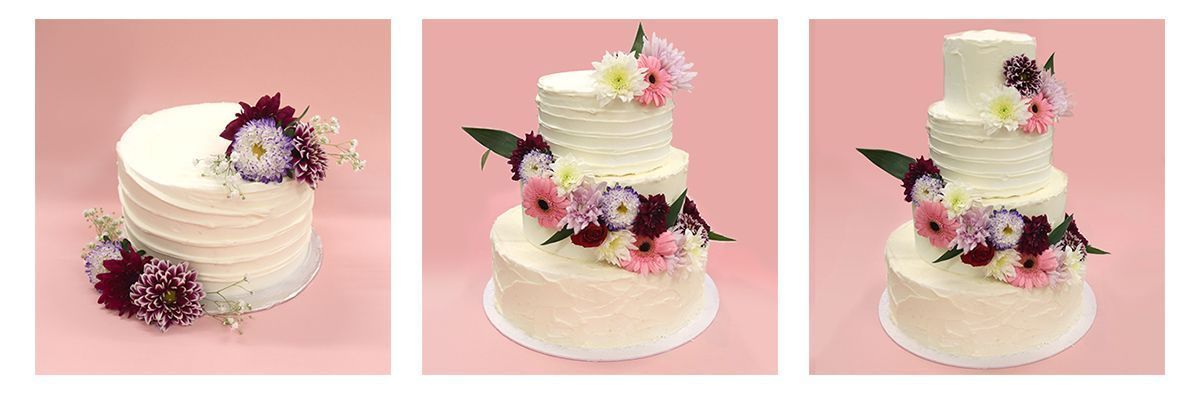We've created a range of beautiful bespoke wedding cakes to choose from and give you ideas. As every wedding is as unique as the couple, we can also create designs just for your big day! You can have any colours, any flowers, toppers and recipe! Check our premade cakes, and order online, or get in touch with our team and we'll help you every step of the way with your dream wedding cake. If you order online, we'll contact you to check all the details including your delivery date, location, cake style, colour scheme and any lovely toppers you'd like to add.